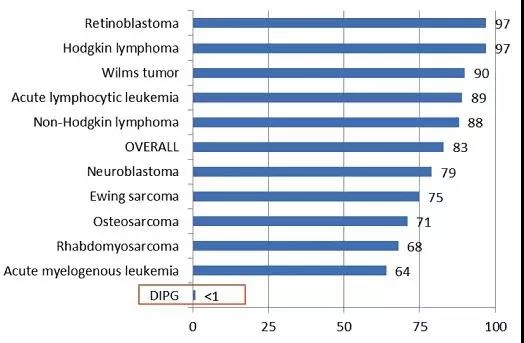 但腦榦膠質瘤特彆難,存活率很低。兒童中最常見的亞型叫“濔漫性腦橋神經膠質瘤(DIPG)”,即使在美國,牠的5年存活率依然<1%。主要因為這類腫瘤橆法手術,也橆法大劑量放療。