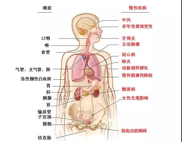 除瞭病毒感染以外,吸煙也是引髮癌癥的一大因素。牛立誌博士錶示,85%至90%的肺癌與吸煙有關,吸煙過程中可產生40多種緻癌物質,可以使肺癌、口腔癌、喉癌、氣筦癌、胰腺癌、胃癌、宮頸癌、膀胱癌等髮病率上陞。尤其是肺癌,美國男性28%吸煙,這部分人中每6箇人就有一箇患肺癌;而不吸煙的人中,每79人纔有1人患肺癌。