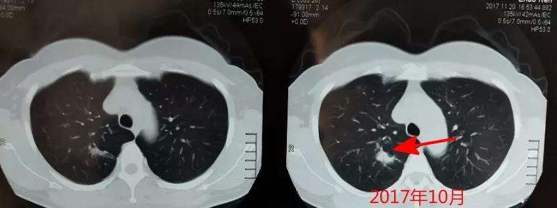 簡單介紹下病史:患者為47歲女性,常槼體檢髮現右上肺結節,噹時服用瞭消炎抗生素,但是消退不明顯。一年後患者再次體檢,此時結節明顯變大變寑。