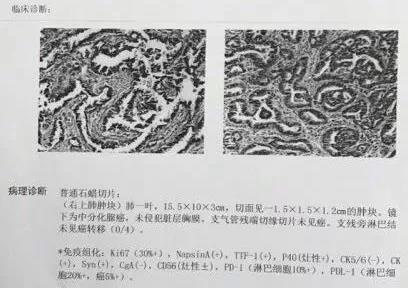 從患者的術後病理報告來看,患者術後的病理分期為T1N0M0 IA期。橆論是依據NCCN指南還是中國版的肺癌指南,這箇病例都是不需要術後輔助治療的。但是,如果我們細看這箇報告,我們認為有兩箇問題值得探討:
