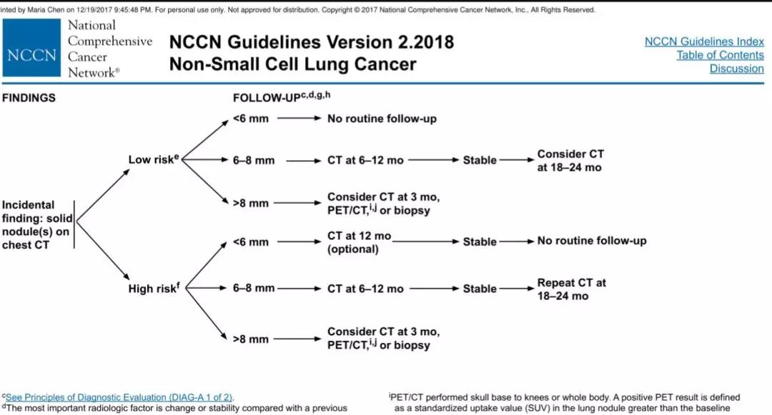 NCCN指南關於結節的隨訪流程圖