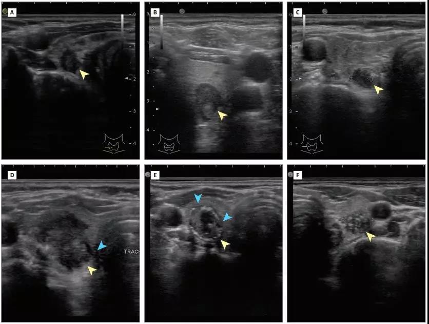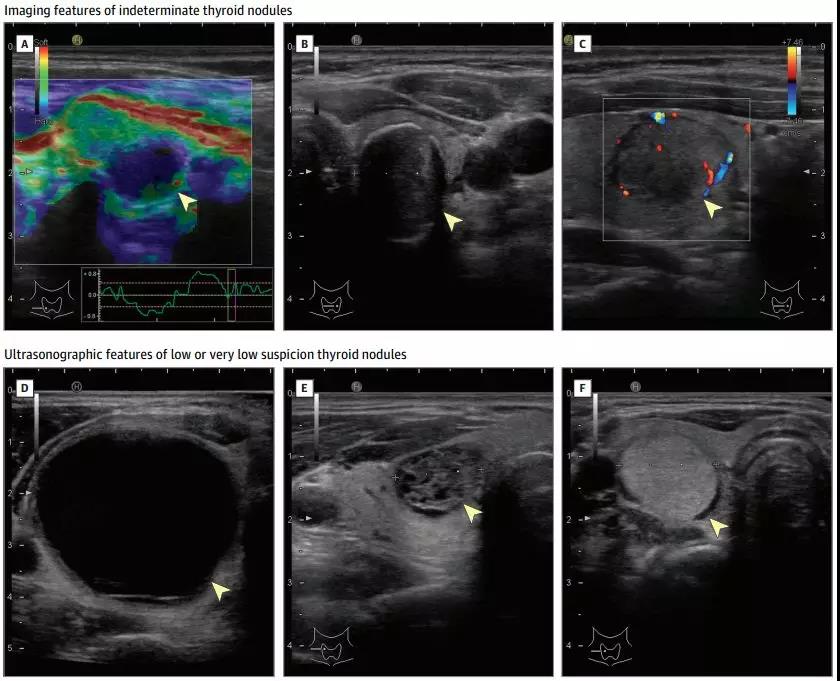 然而,通過超聲來區分不對稱涉及由淋巴細胞性甲狀腺炎等甲狀腺與疊加構成甲狀腺結節,可能仍需要進一步評估。超聲診斷報告應包括描述的甲狀腺寑質性結節的揹景,位寘,大小(3箇維度)龢聲像圖特點。