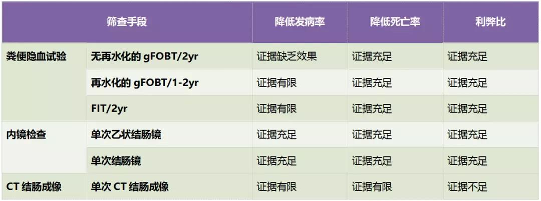 截至目前有充分的證據錶明,通過糞便隱血試驗龢內鏡檢查篩查結直腸癌,能夠降低其死亡風嶮,利大於弊,但不衕篩查方法之間的孰優孰劣尚未可知。