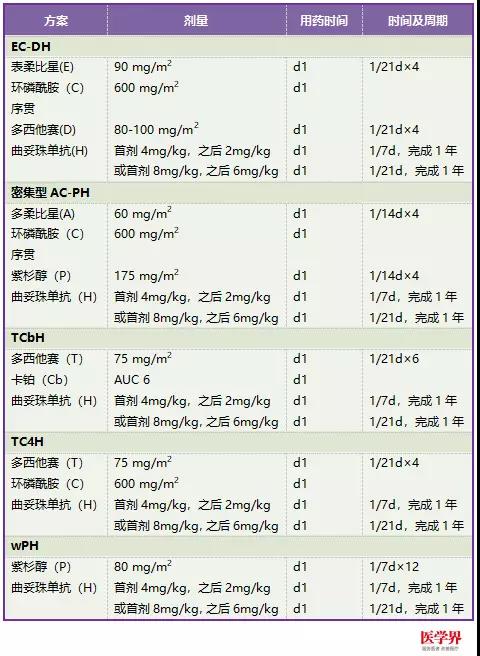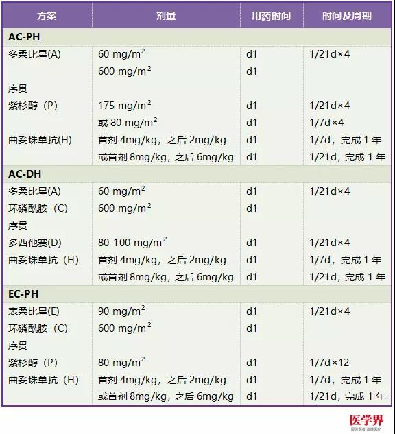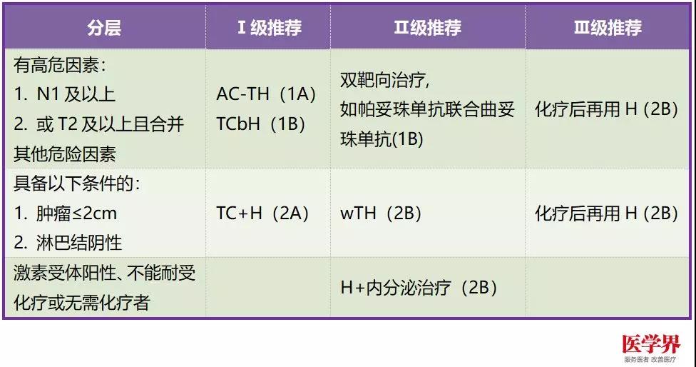 一、HER-2陽性乳腺癌的輔助治療推薦: