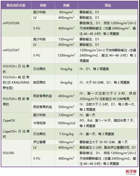最後,界哥整理瞭NCCN指南中結直腸癌常用化療方案的用法用量推薦,拿好不謝!
