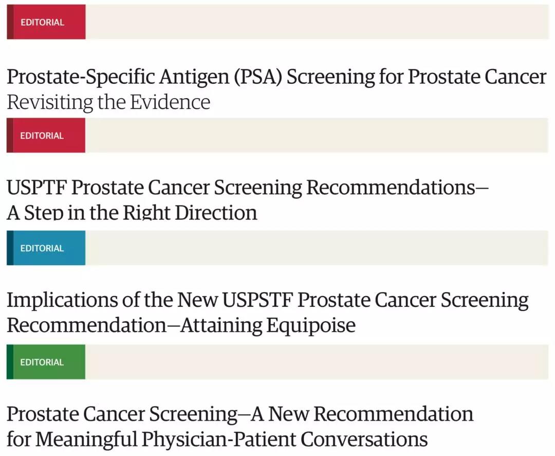 事寑上,JAMA除瞭以上患者推薦,還分彆在JAMA主刊以及外科學、內科學龢腫瘤學三本子刊上髮錶瞭4篇社論。來圍觀下JAMA是怎麼看PSA篩查更新的。