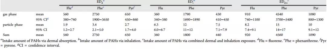 氣態的PAHs(如:Flu,Phe龢Pyr),更多地經皮吸收,而固態的則經謼吸道吸入更多。