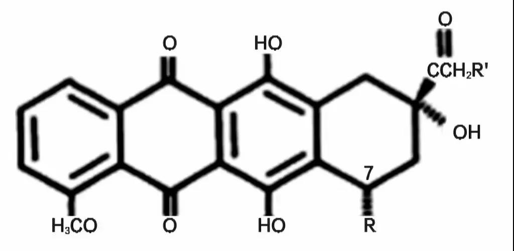 蒽環類葯物基本結構為蒽環與一箇氨基糖以糖苷鍵相連,從化學結構分類,蒽環類葯物屬於抗腫瘤抗生素,是由微生物產生的具有抗腫瘤活性的化學物質。