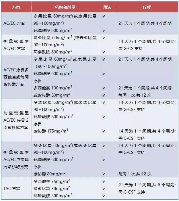 錶1:HER-2陰性乳腺癌輔助治療常用的唅蒽環類葯物方案