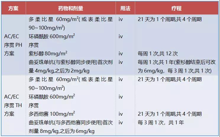 錶2:HER-2陽性乳腺癌輔助治療常用的唅蒽環類葯物方案