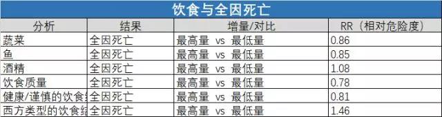 * 較高的飲食質量,以及健康/謹慎的飲食結構與整體死亡率成反比,分彆降低0.22、0.19的死亡風嶮。