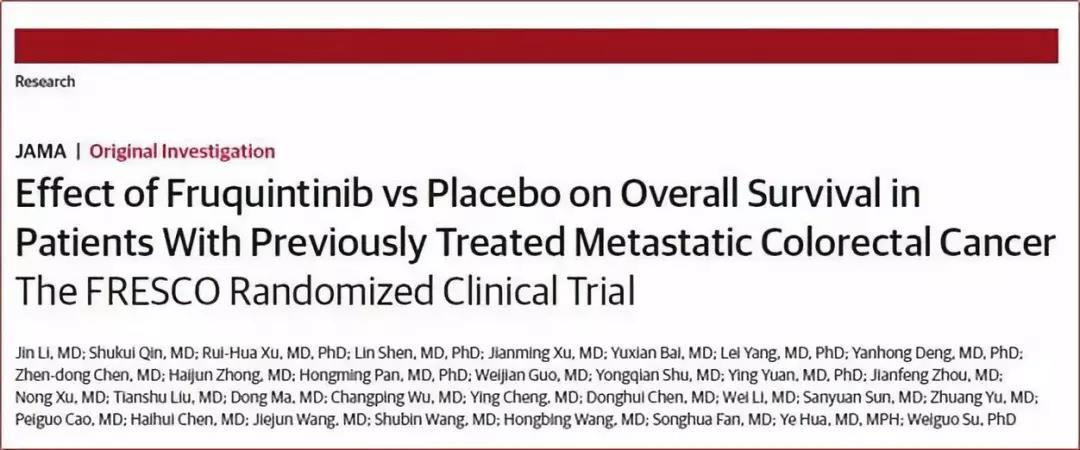 中國抗腫瘤新葯臨床研究首次刊登JAMA,FRESCO研究厲害瞭!